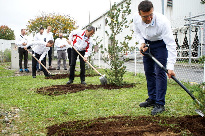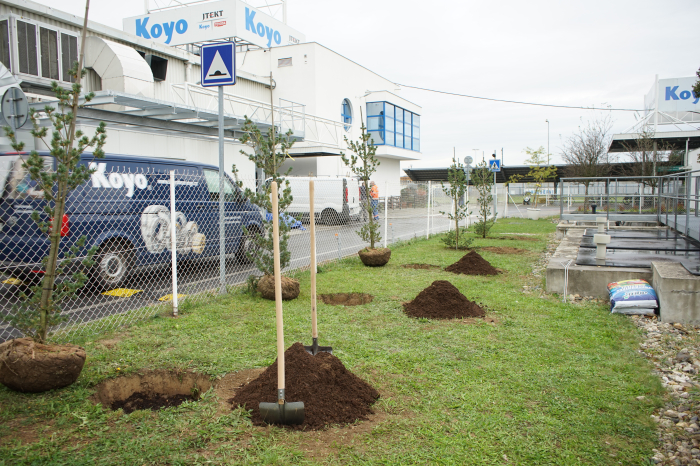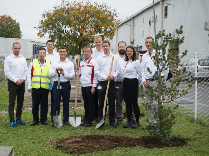 Naše společnost má na seznamu spoustu aktiv pro podporu životního prostředí. Jednou z nich je například výsadba zeleně, kterou se společnost snaží přispět ke snižování/pohlcování emisí CO2 a k lokálnímu snižování teploty. Tuto výsadbu borovic v areálu závodu (konkrétně v oblasti čističky odpadních vod), jsme spojili s návštěvou pana Uedy. Mimochodem - za posledních 5 let dokázala naše společnost snížit spotřebu elektrické energie, a tím i emise oxidu uhličitého o 13%.