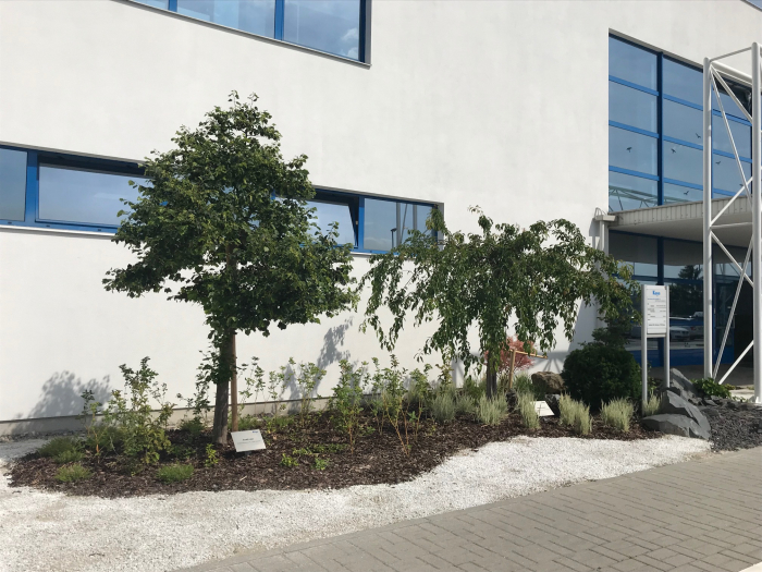 Úprava se týkala i oblasti před závodem, kde proběhla výsadba stromů a keřů nebo v oblasti kuřárny, kde bylo instalováno zavlažování trávy.