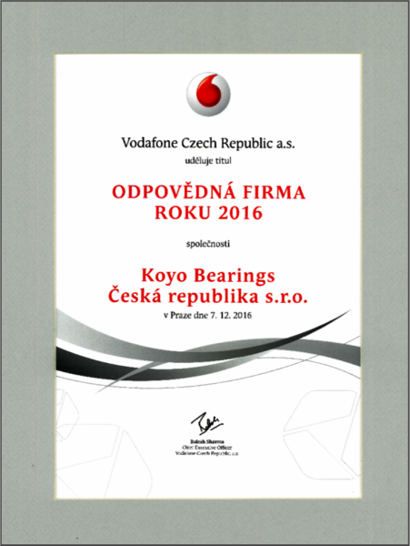 Koyo je ODPOVĚDNOU FIRMOU ČR roku 2016