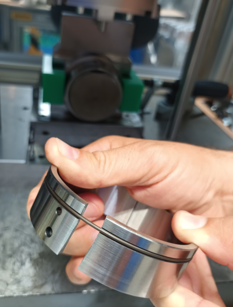 Produkt, který tomuto zákazníkovi budeme dodávat, je specifický tím, že se nejedná o ložisko ani vlastně o kroužek. Přesněji řečeno jde o speciální sestavu zlomeného kroužku, spojeného pojistným kroužkem a s namontovaným pružným kolíkem.