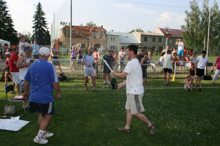 Hráči fotbalových družstev bojovali s vysokým nasazením navzdory tropickým 35°C, za což byli náležitě odměněni při vyhlašování výsledků (viz obrázek). Mezitím družstva tvořená dospělými i dětmi soutěžila v sedmi disciplínách, mezi něž patřila např. chůze na chůdách, skok v pytli nebo paměťové hry. Pro menší děti byly připraveny zábavné soutěžní hry, mnohé se též proháněly na prolézačkách a houpačkách v areálu. Po vyhlášení vítězů všech soutěží byla slavnostně zapálena vysoká hranice. Děti i dospělí si opekli špekáček, kdo chtěl, zatančil si při hudbě, kterou pouštěl zkušený DJ a moderátor celé akce z rádia Haná. Počasí bylo příznivé až do večera, kdy nám na konci celého dne pomohl déšť uhasit oheň.