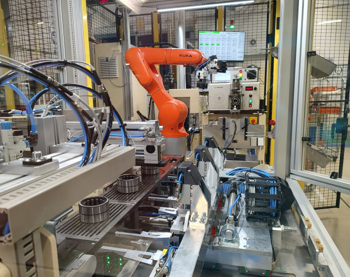 Čím se nová linka odlišuje? Samotná montáž probíhá na mobilních (vyměnitelných) poloautomatických zařízeních, zatímco plně automatické stanice provádějí kontrolu radiální vůle, měření vibrací (tedy hlukovou zkoušku) a kontrolu kompletnosti ložiska.