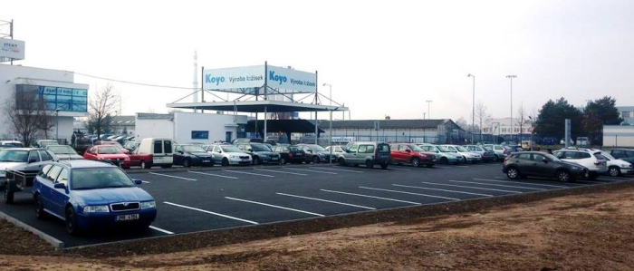 Zaměstnanci již parkují na novém, parkoviště před závodem se rozrostlo